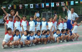| 体操の先生と。ヤッター!!おー!!!! お父さんやお母さんカメラマンにサービス 記念撮影。 |