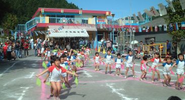 | 保育園に入園していないお友達の競技です。 今年は大勢来てくれました。 |