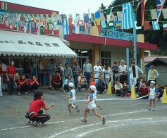かけっこです。 みんな、頑張れ。がんばれ!! |