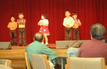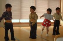 | 子供たちもすっかりリラックス・・・ お友達の遊戯を一緒に踊りだして、年長組のお姉さんから4歳児が言われていました。 「ねぇ、静かにしないといけないんだよ、暴れていると汚れちゃうよ、それ衣装なんだよ」 「危ないでしょう〜、おじいちゃんたちにぶつかったら危ないよ」 そう言うお姉さんたちも最後はよさこいソーランロックを袂を振って踊っていました。 |