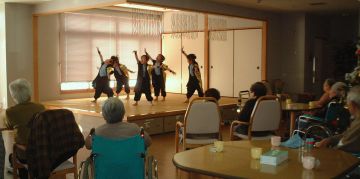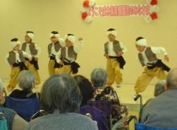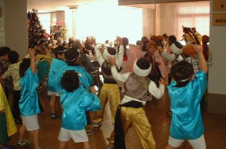 | あゆみえん 九十九園 訪問 2003年12月8日 成木台病院 飯能リハビリ館 訪問 2003年12月9日 老人福祉施設など4箇所の施設にお遊戯で訪問しました。とっても喜んでくださいました。 |
