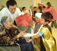 | 最後は、おばあちゃんから御礼の言葉。皆さん涙涙でした。 子供たちも「おばあちゃんたちが泣いていたよね。」と、・・・・ 嬉しくっても涙が出るんだよ。 喜んでいただけてよかったね。いっぱい頑張ったものね。また、来ようね。 帰りのバスの中は満足感で大騒ぎでした。 |