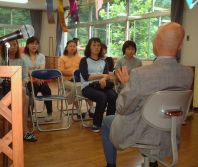 | 3歳から5歳の子供たちは、おじいちゃんの素話を とっても良く聞いていました。 おじいちゃん先生は、もうすぐ89歳です。 お話を聞いた次の日、子供たちが、おじいちゃんがお話の中で歌った「ランラ.ラ〜 ランラ.ラ〜・・・」 という一説を歌いながら廊下を歩いていました。改めてよく聞いていたんだなとビックリでした。 |
