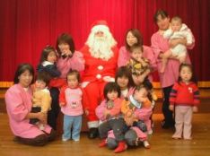 | 今年のサンタクロースさんは4人のお子さんを持つ「クリスティーさん」と言う女性でした。 とつてもやさしく一人一人に接してくださいました。 クリスマスにはきっとみんなの家にもサンタさんが来てくれることでしょうね。 |