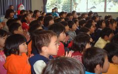 | すばらしいマジックを見せてくださったお兄さんとお姉さんに大感激の子供たちでした。 おませな女の子は、すっかり慶太さんにあこがれてしまったようです。 |