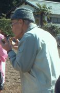 | 今日はじゃがいも植えです。 数日前にしっかりとみんなで草取りをしました。 地域のお年寄りの方にいろいろと教えていただきました。 じゃがいもを半分に切って、 病気にならないように「灰」をつけるんだって・・・ まずは、高齢者クラブの会長さんからお話です。 |