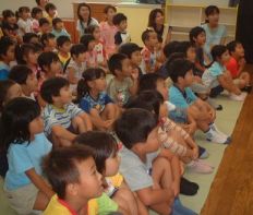 | 子供たちのびっくりした顔 うれしそうな顔 真剣な顔 わくわくした顔を見てください。 なんともいえない良い顔をしています。0.1歳児もじっと見つめていました。 |