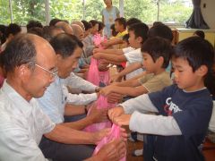 | 園長、理事長、高齢者クラブのお話、そしてプレゼント。 |