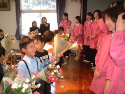 | 楽しかったこと、面白かったこと、けんかしたこと・・・いろいろあった保育園 たくさんの思い出を胸に、元気な一年生になってください。 在園児の拍手に送られて・・・・ |