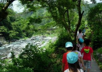 | しばらく遊んで、取れたてきゅうりをご馳走になって みんなで多摩川に遊びに行くことになりました。 |