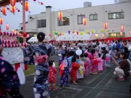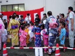 | 17年7月16日 午後、成木地区はすごい雷雨。 その雨も夕方には止んで、 あゆみえんの盆踊りが 行われることになりました。 可愛い浴衣をきてあゆみえんに集合 一人の園児に、保護者、家族、お友達・・・ 思っていたより大変な数。 |