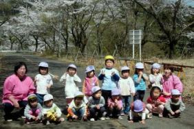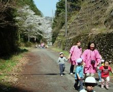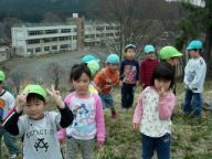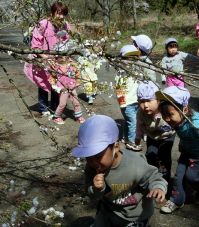 | 2005年4月9日には、、卒園した子どもたちが遊び (卒園児との交流事業) に来ました。 一年生になって、ちょっと緊張していた子どもたち、久々にお友達に会ったり先生に会ったり ほっとしたような笑顔でした。川におたまじゃくしを取りに行きました。 簡単なお昼を食べて、「また ね〜」と帰っていきました。 |