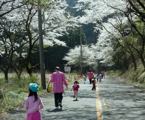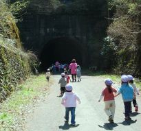 2005年4月14日 成木の旧吹上トンネルにぞう、きりん、ぱんだ組でお花見。 車は通らないし、桜はきれいだし。 |