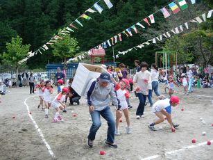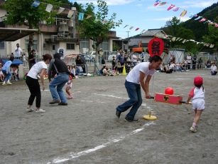 九十九園のおじいちゃんたちとぞう組の玉いれ