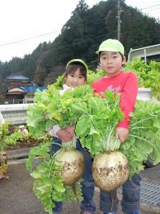 ひょうたんのような大根もありました。         大きな大根、重い。