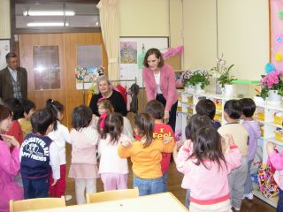 英語で遊ぼう 2006.4.12 今年も横田基地から、英語の先生がきます。 クリスティーさんの後任は、サラさんです。 |
