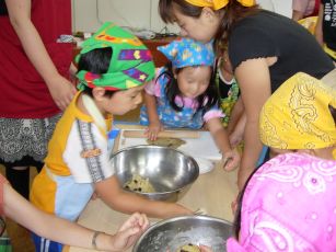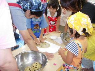 | 青梅市健康センターと給食センターにお願いして、 食育のお話とクッキーつくりを親子でしました。 |