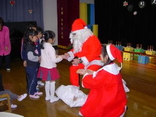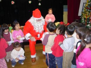 今年も青い目のサンタクロースが「成木保育園」に来ました。