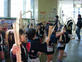青梅線の河辺駅で今年も年長児が南京玉すだれをしました。