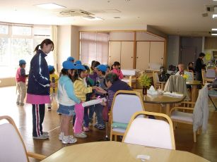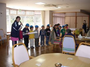 2007年3月15日 卒園式の練習の合間に、保育園のバスに乗って4カ所の老人ホームに行きました。