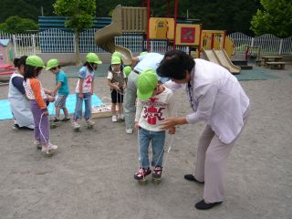 | 缶ぽっくり 竹でも作ってくれました。 最初はできなくても、何回か挑戦していると全員ができるようになりました。 |