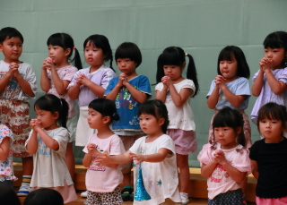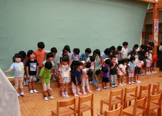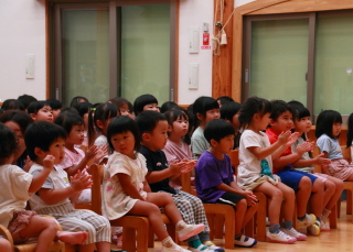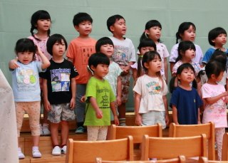 2025/9/12 敬老の日の集い 今日はおじいちゃんおばあちゃんを招待して 敬老の日の集いを行いました。 ぞう組きりん組ぱんだ組からは歌と手話の披露がありました。 この日の為に一生懸命練習してきました。 女性和太鼓グループ「雅(みやび)」 による太鼓の演奏が披露されました。 おじいちゃんおばあちゃん、 元気で長生きしてね。