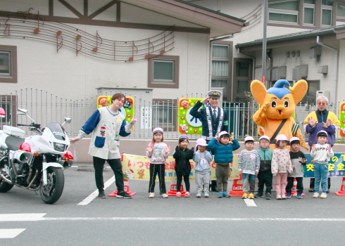 交通安全を呼びかけました。