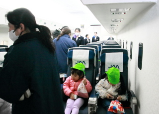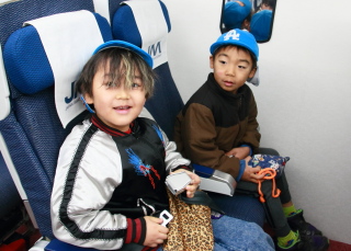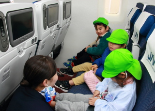 本物の飛行機に乗ったような感じでみんなニコニコ。