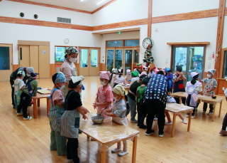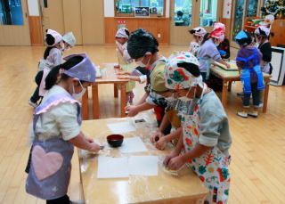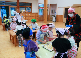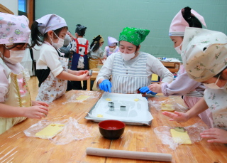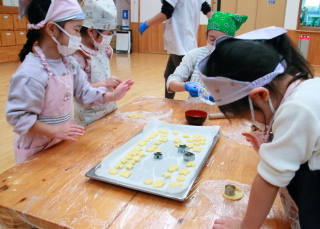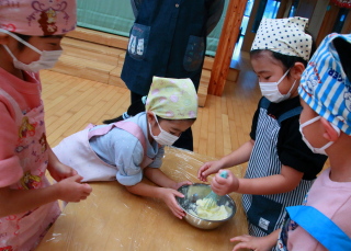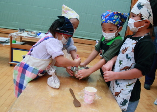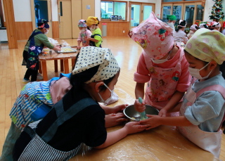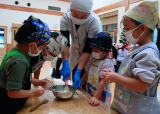 きりん組は給食の先生が前もって作ってくれた生地から