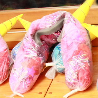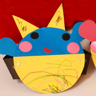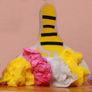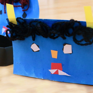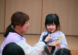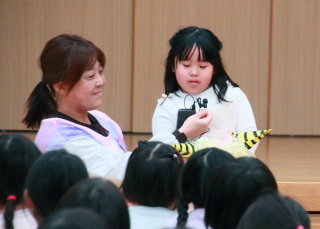 ホールに集まって、それぞれのクラスで制作したものを披露しました。