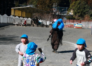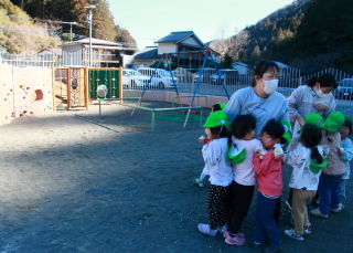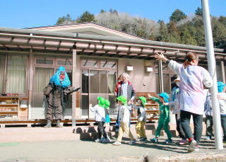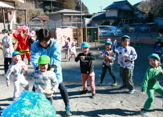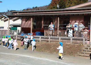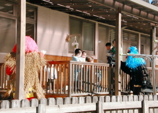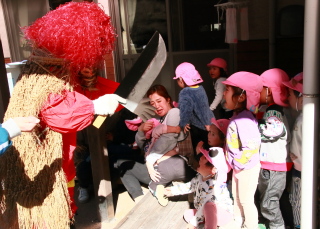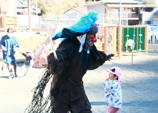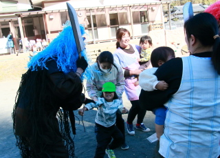 怖くて先生の後ろや遊具の後ろに隠れる園児もいましたが、