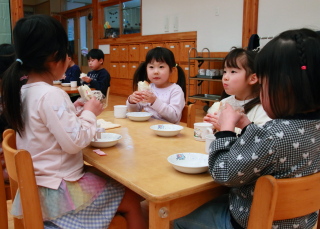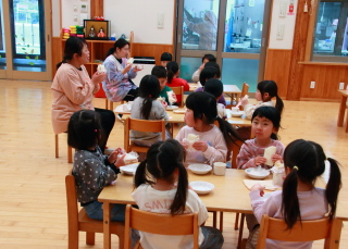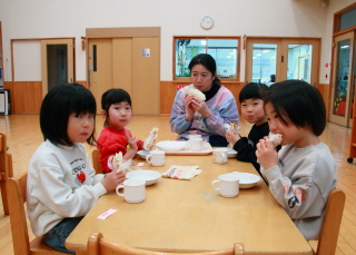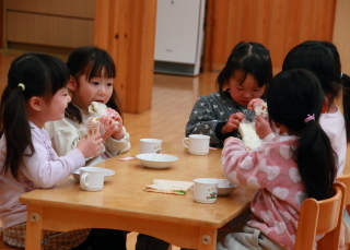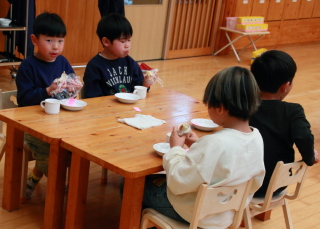 おやつにみんなでホールで食べました。