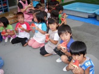 スイカ割のあと、最後のプールに入る予定でしたが、気温が下がってしまい、残念ですが入ることができませんでした。