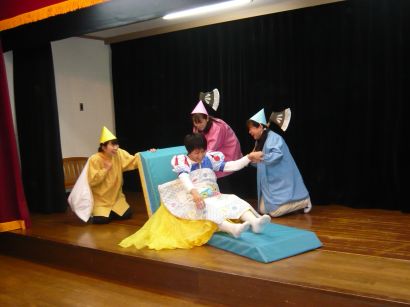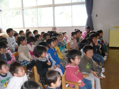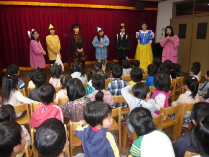 | 先生たちの熱演に、子どもたちは笑ったり、心配したり・・・・いつもと違う先生に大喜びでした。 |
