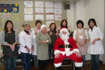 サンタクロースが来ました。体調を崩した、Deeさんも今日はしばらくお休みのご挨拶に一緒にきました。