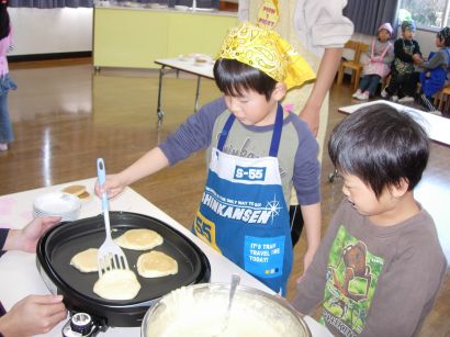 24日はぞう組、きりん組がホットケーキを焼きました。