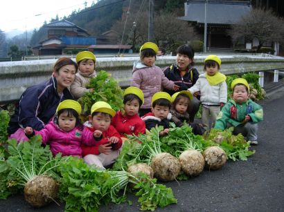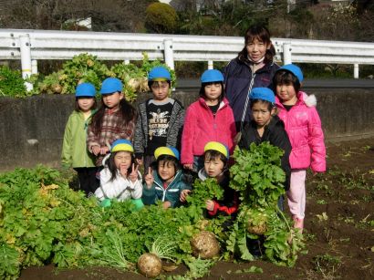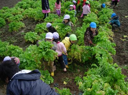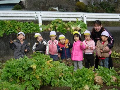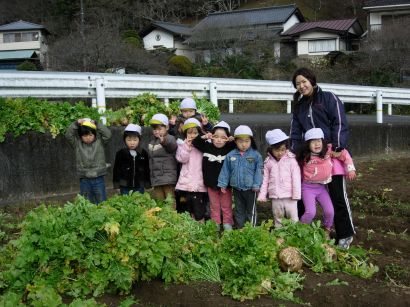 子どもたちの頭より、大きな大根です。