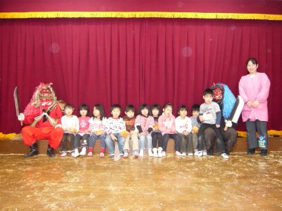 暴れまわった鬼もやがて疲れて、みんなで記念撮影。 |