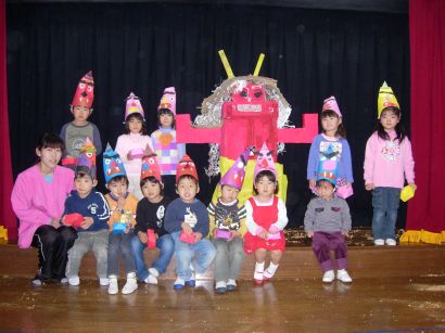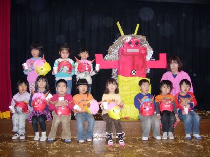 担任が鬼が帰って行ったよと迎に来ると、狭いところから、ぞろぞろと10人も出てきました。