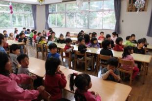 それを見ていた、ぞう組が、僕たちもサンタさんに玉すだれを見せたいと、サプライズ。 |