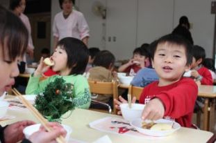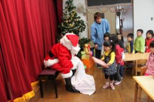 保育園のクリスマスは終わりました。24日の夜は、僕の、私の家に来てねと