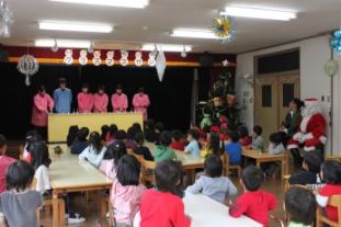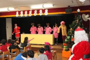 先生たちが、ベルでクリスマスソングを、そして楽しい寸劇もしました。