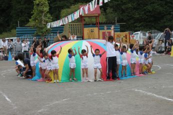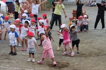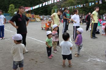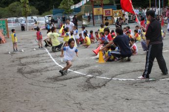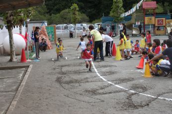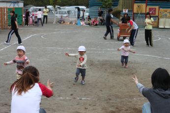 当日は保育園の庭で運動会が出来て、よかったですね。