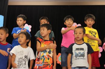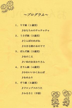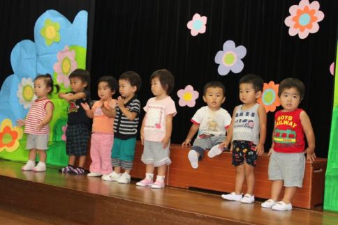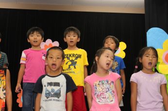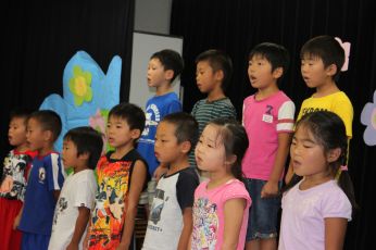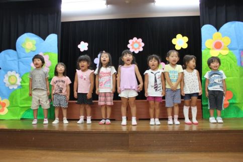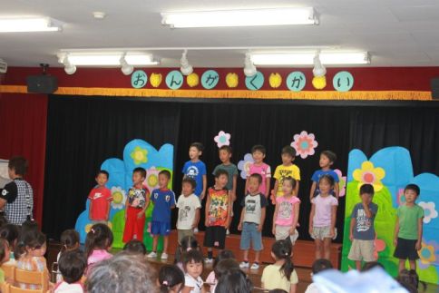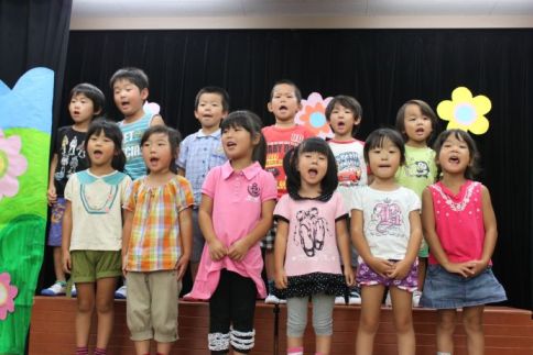 きりん組は、かわいいかくれんぼと、あめふりをうたいました。