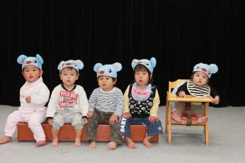 | ぞう組 5歳児 きりん組 4歳児 ぱんだ組 3歳児 うさぎ組 2歳児 りす組 1歳児 こあら組 0歳児 |