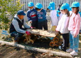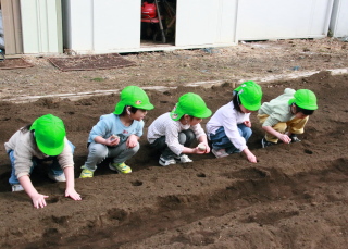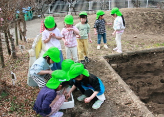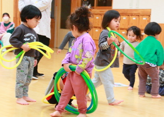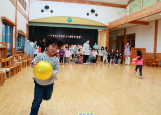 ホールの中で乳児クラスと幼児クラスと順番に遊びました。