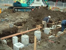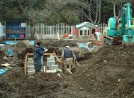 | 天候が悪くてなかなか進まない大型遊具の設置です。今日も基礎をしていますが、 すごく大掛かりの工事です。ぞう組さんの卒園までには間に合わなくなってしまい残念です。 |