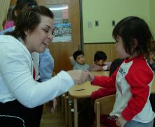 | 今日は、体操教室、先日、先生の都合でできなかった英語教室が重なってにぎやかでした。 特に英語の先生は3人のかわいいお嬢さんを連れてきて、一緒に園児と遊んでくれました。 朝から、一日職場体験で中学生も来ています。にぎやかな一日でした。 |