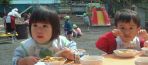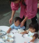 全員が「いただきます」をするまで、 先生たちは大変。 みんながおいしく食べられるように 頑張っています。 |
