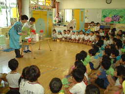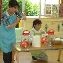 魔法の水を入れるんだって・・ 魔法の水って なんだろう それがわかれば、僕の家だって作れるよ。 と成木保育園の園児が言っていました。 |